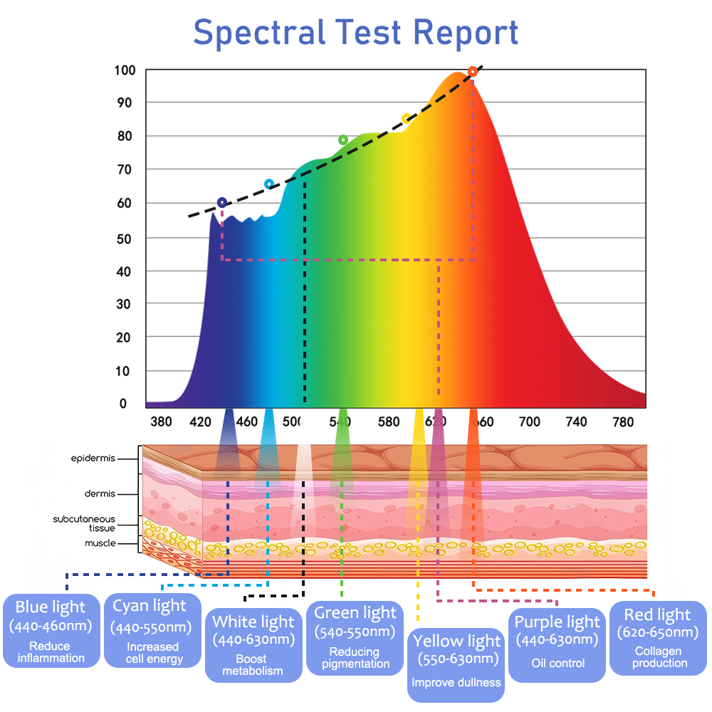Red:Renew collagen and elastin fibers;Anti-Aging: Reduces Fine Lines and Wrinkles; Wound healing and tissue repair;Release happy hormones;Reduce Cellulite.